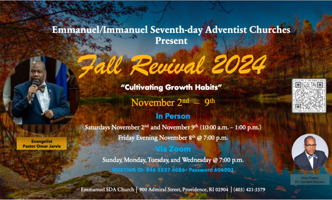 Join us this fall for an inspiring spiritual retreat from November 2 to November 9! This is a fantastic opportunity to immerse yourself in a journey of self-discovery and growth, with Evangelist Pastor Omar Jarvis. Bring a friend along for the adventure, and together, you'll be blessed, inspired, and challenged to cultivate habits that improve your relationship with Jesus and grow in wisdom, strength, and insight. Don't miss out on this transformative experience—it's time to embrace joy and stronger faith connection! Click here to Join on Zoom.